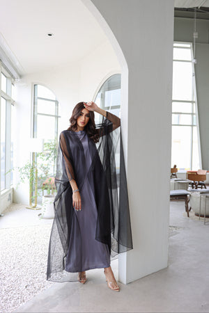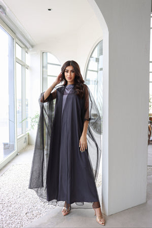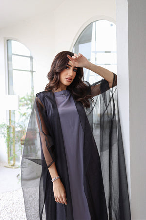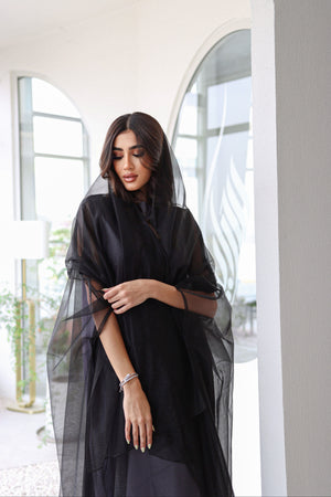 Organza tool abaya with shela