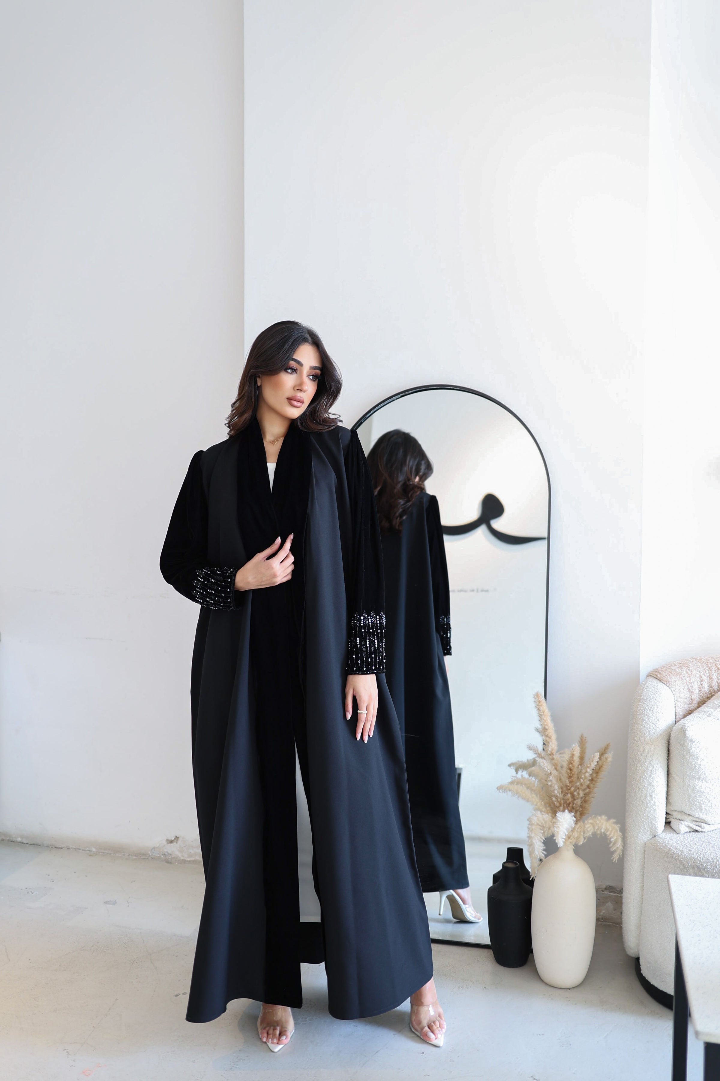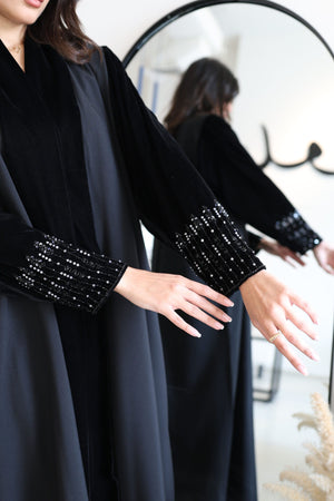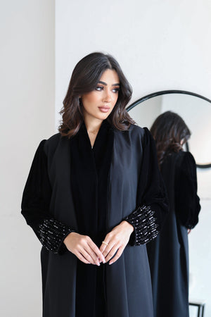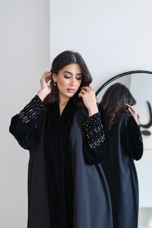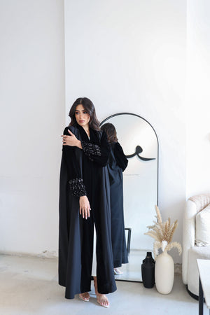 abaya and shela with embroidery sleeves