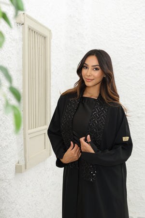 Crepe fabric abaya with embroidery collar & black shela