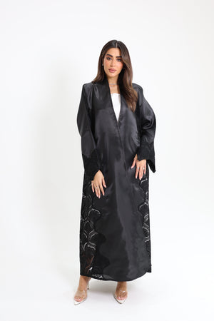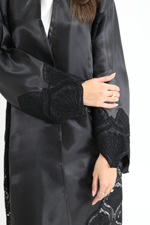عبايه اورقنزا بتطريز على الاطراف مع دانتيل فصوص العبايه مع الشيلة